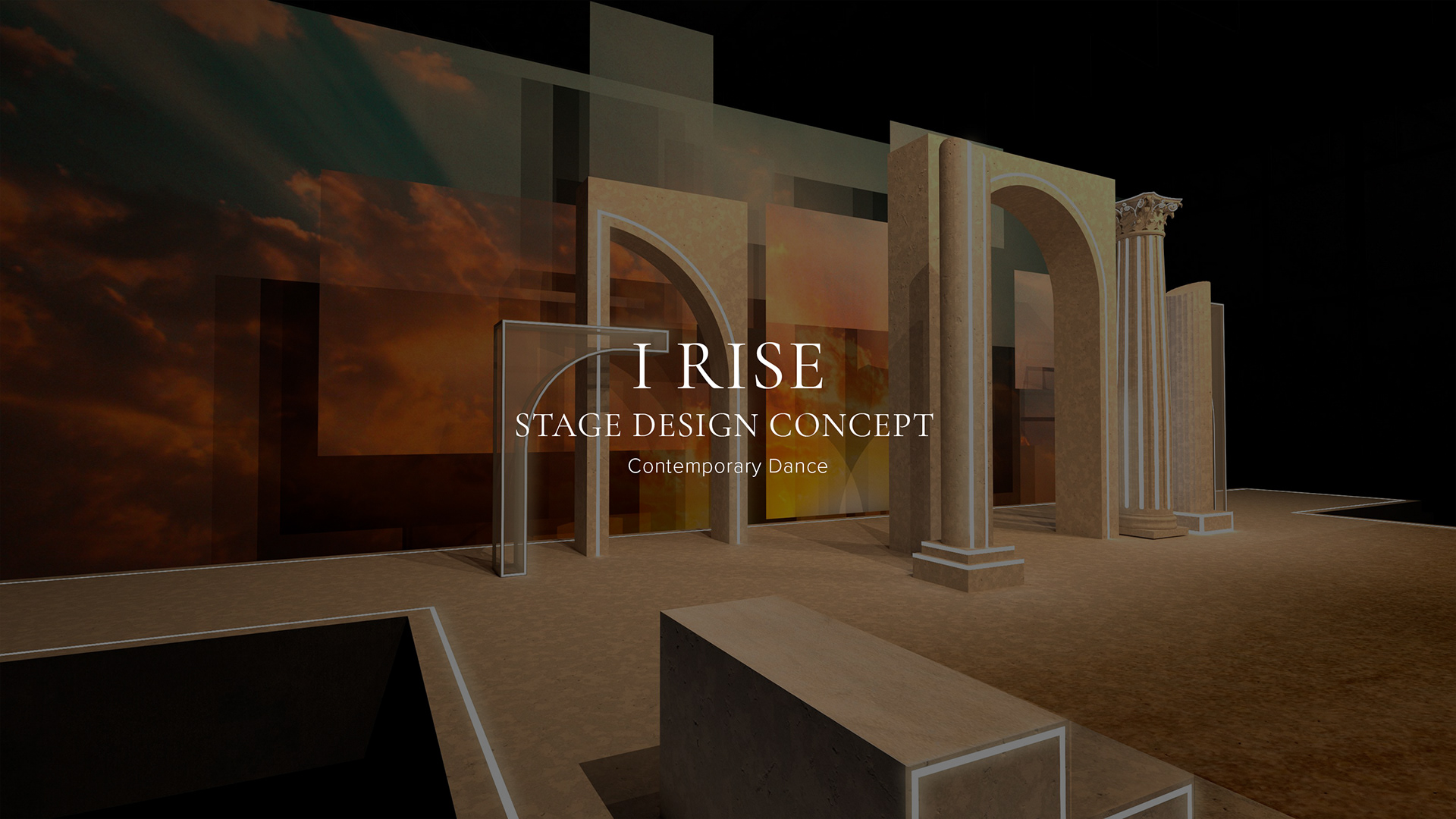 To create a dynamic set for an original contemporary dance performance inspired by an excerpt from the Maya Angelou Poem, 'Still I Rise’. The stage must effectively communicate the transition between themes of fear and freedom and serve as a visual representation of Maya Angelou's timeless message of resilience and empowerment providing an interactive space for the dancers to perform drawing the audience into the story without distracting from the performance.
