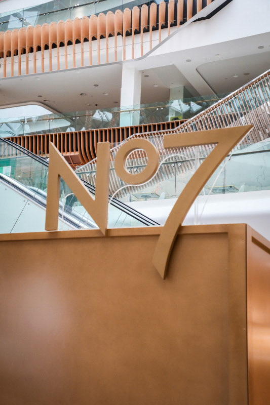 On the first day the stand was completely unbranded and guests were welcomed into the stand by BA’s offering them beauty advice, samples and the opportunity to try out the new Pro-Artist beauty range. Guests then walked through the curtain to a magic mirror where the mystery brand was revealed alongside a photo moment. On the second day the No7 branding was applied to give maximum visibility within the shopping centre.From the moment customers entered, they were captivated by the elevated spatial design which layered brushed gold finishes with white marble textures contrasted with deep grey hues. The space was elegantly designed to feel both sophisticated and inviting, with interactive elements that encouraged personal engagement with the products. A carefully orchestrated surprise reveal of the brand sparked curiosity and excitement amongst the customers.