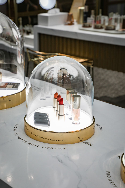 An immersive, sensory-rich environment was crafted that embodied the essence of luxury and exclusivity. The pop up was reminiscent of high end luxury beauty stand; with mesh panels, marble counters and gold detailing.